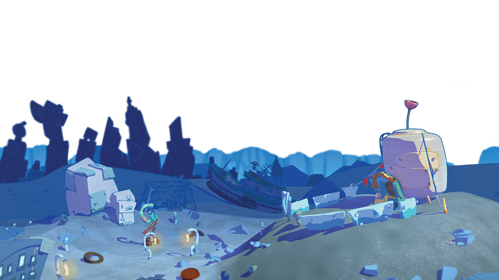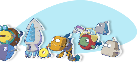 嗨~我是史蛋!一條超級大胃王機械魚,專門把垃圾吃光光!不過…海底垃圾真的太多啦,有時候我也會吃得肚子痛。快來跟我一起挑戰,把海洋變乾淨吧!